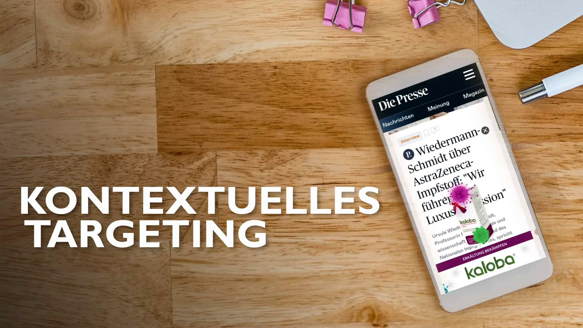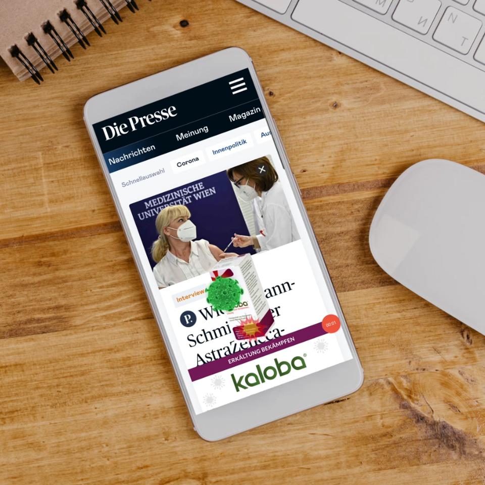 Ziel war es, für Schwabe Austria digitale Reichweite und Aufmerksamkeit für Kaloba, ein pflanzliches Heilmittel gegen Erkältungen und Bronchitis, zu erreichen. Die Zielgruppe – Frauen mit Interesse an Gesundheit – sollte mittels genau auf sie abgestimmter Werbemittel & einer Kombi aus Auffälligkeit und Reichweite bestmöglich angesprochen werden. Neben einem Fullsite-Branding wurde ein neues, besonders auffälliges Werbemittel für Kaloba kreiert – das mobile „Transparent Cover Ad“. Es vermittelt die antiviralen Eigenschaften des Produkts auf einen Blick und wird als Overlay platziert, so dass der Content im Hintergrund sichtbar bleibt. Durch kontextuelles Targeting wurde sichergestellt, dass die Werbemittel auf den ausgespielten Portalen jeweils im richtigen Umfeld erscheinen, um die Verbraucher effektiv zu erreichen. Das digitale Sonderformat wurde auf mehreren Medien umgesetzt, angepasst und laufend anhand der KPI optimiert, um die maximale Aufmerksamkeit in der Zielgruppe zu erzielen.