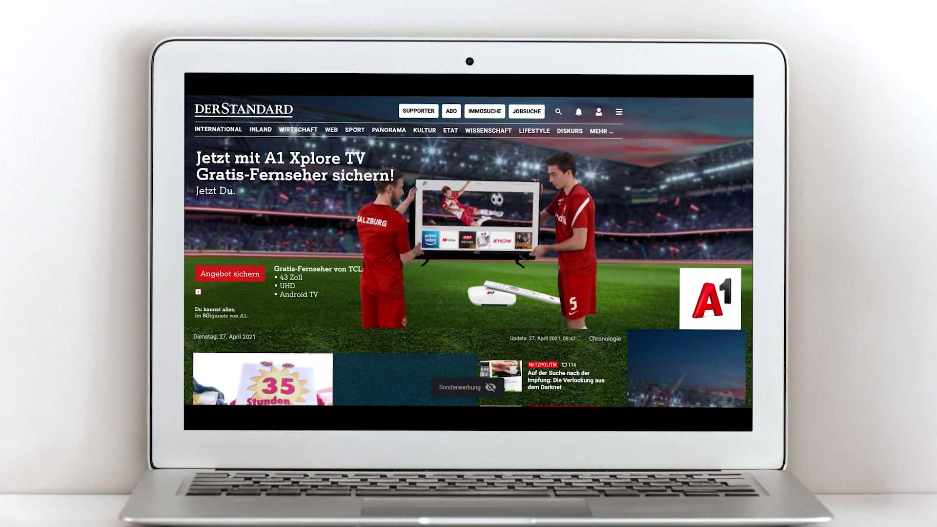 Auf derstandard.at sahen die User ein vermeintlich statisches Display Ad, in dem ein Gratis-Fernseher beworben wurde. Plötzlich spazierten 2 Profi-Fußballer ins Ad und zeigten vor, was die User tun sollen: sich einfach einen Fernseher schnappen!