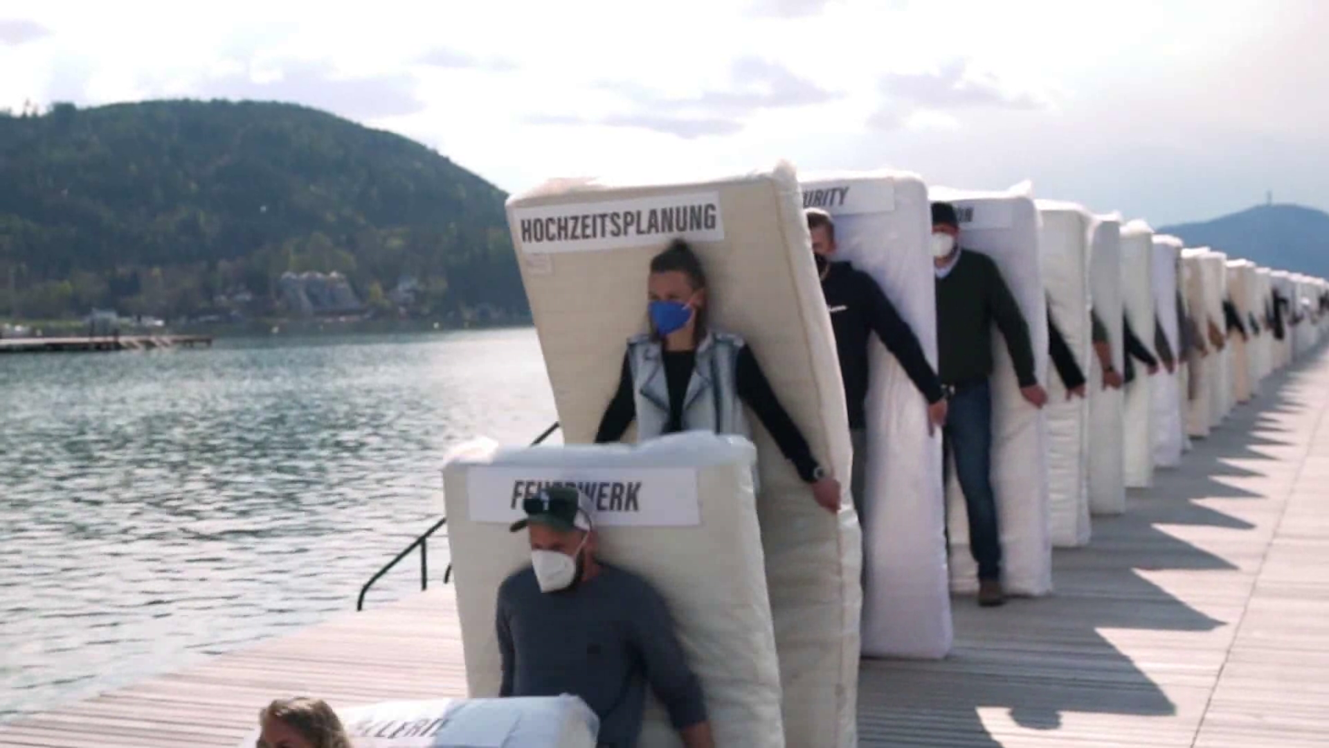Dazu wurde ein Aufruf gestartet, dem rund 100 Kärntner Unternehmen aus der Veranstaltungsbranche in Strandbad Klagenfurt folgten: Security Firmen, Catering-Unternehmen, Floristen, Hochzeitsplaner, Möbelverleiher, Tischler, Lichttechniker, Tontechniker, Zeltverleiher, Gastronomen, Fotografen,...– einer nach dem anderen fiel wortwörtlich um und demonstrierte damit den Ernst der Lage.