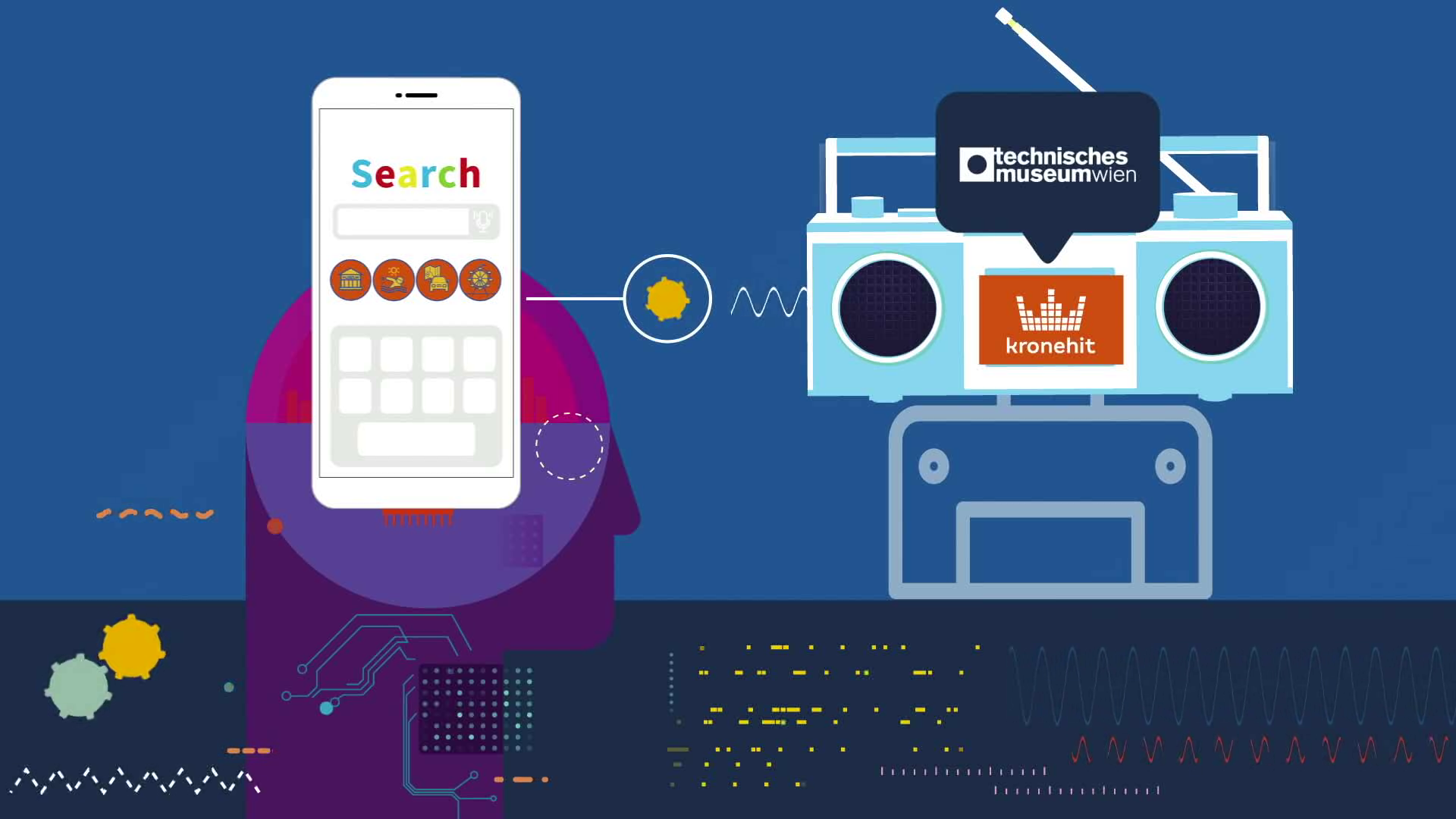 Genauso wie das Wetter oder das Verkehrsaufkommen pro Bundesland unterschieldich ist, ist es auch das Suchverhalten nach Ausflugstipps in den Ferien. Dies nahmen wir zum Anlass, um für die Sonderausstellung zum Thema Künstlichen Intelligenz sich eben dieser für eine datadriven Kampagne zu bedienen. In Kooperation mit dem nationalen Hörfunksender Krone Hit wurden entlang der 5 für das Museum am relevantesten Bundesländer regionalisierte Sots erstellt, die über eine Serverschnittstelle zwischen dem Sender und Google Search nur dann ausgespielt wurden, wenn das Suchverhalten entsprechend hoch war. Für zusätzliche digitale Reichweite sorgten Native Ads im passenden kontextuellen Umfeld sowie eine Verlängerung der Kampagne über Webradio mit zielgruppen-affinem Targeting.
