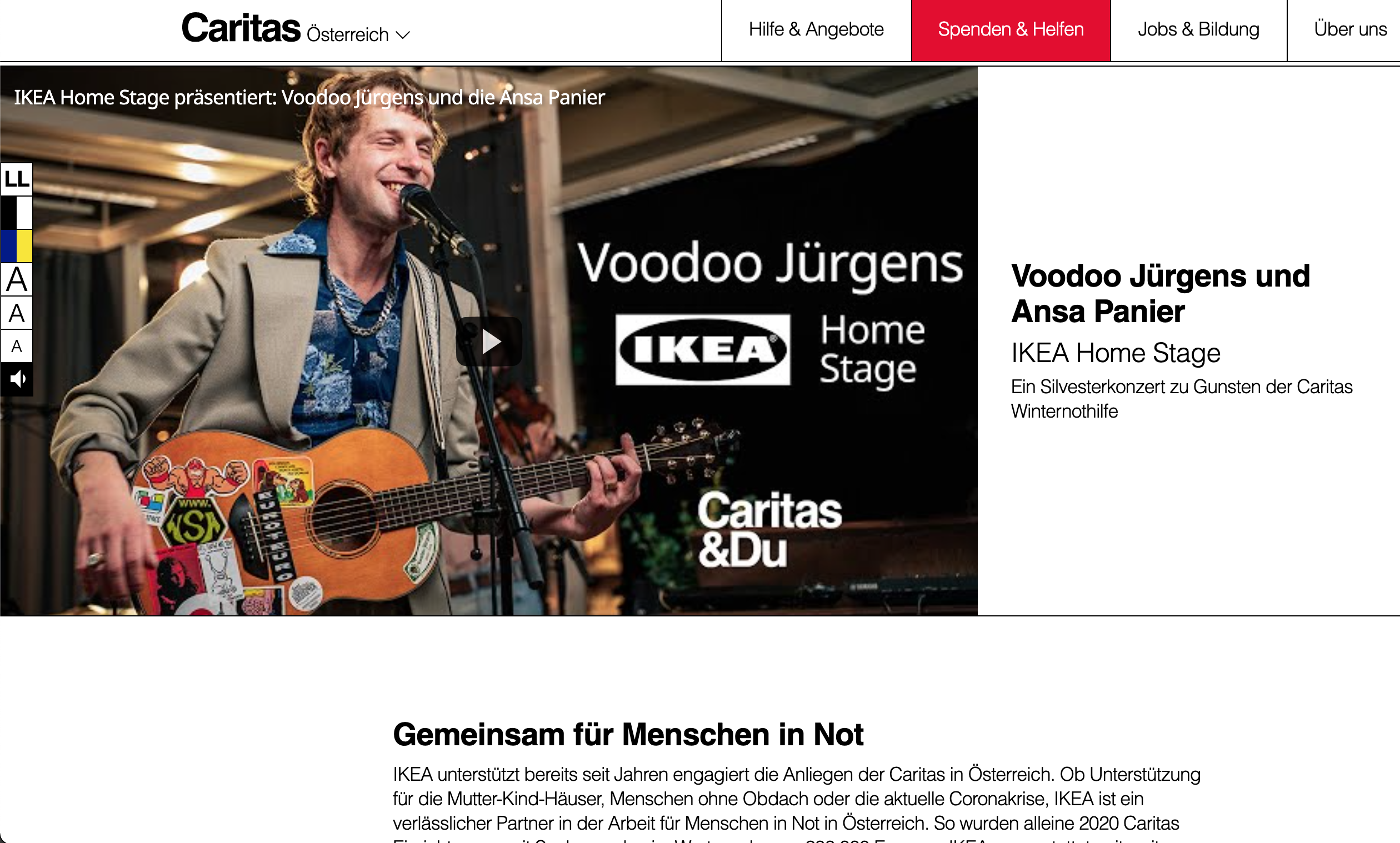 IKEA Home Stage wollte während einer Pandemie nicht nur neue Wege beschreiten und Künstlern eine Bühne geben, man wollte die Leute - und auch die eigenen 3.000 Mitarbeiter - in einer schwierigen Zeit unterhalten und motivieren und hat damit einen neuen, erfolgreichen Weg des Fundraisings beschritten! Das Silvesterkonzert mit Voodoo Jürgens konnte eine authentische Verbindung zwischen Unternehmen, Mitarbeitern, Künstlern und Kunden schaffen und fand zugunsten der Caritas Winternothilfe statt. Zur Vorbereitung der Eröffnung des neuen Einrichtungshauses am Wiener Westbahnhof wurde das Konzept fortgeführt. Dafür konnte Wanda auf die IKEA Home Stage geholt werden - der Erlös kam der Volkshilfe für den Kampf gegen Kinderarmut zugute.