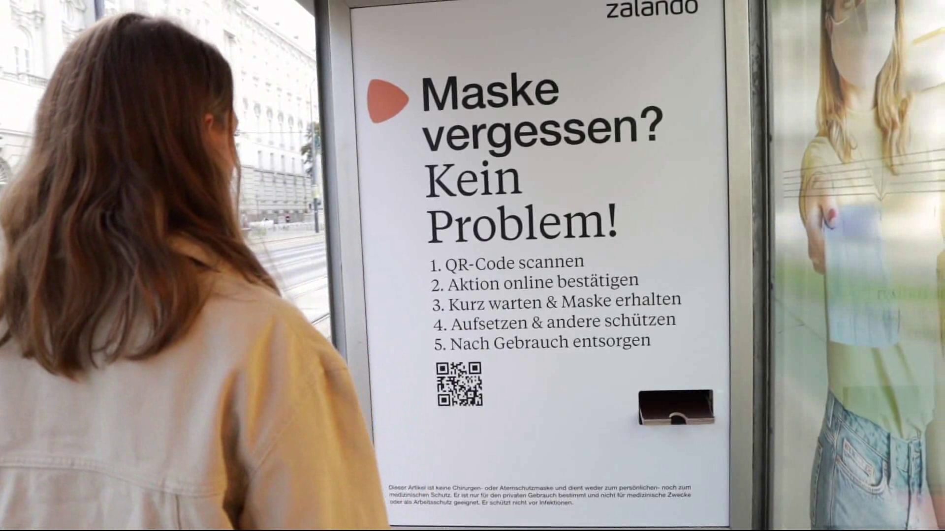 Hierfür wurde von Gewista für Zalando ein web-angesteuerter Maskendispenser entwickelt.